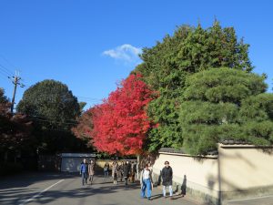 東福寺に向かう途中にも、あざやかな紅葉があちこちに。