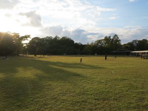 キャッチボールやったり、バドミントンやったり、寝転んだりいろいろです。