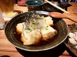 揚げ出し豆腐。京都らしさ全開。ぶっちゃけ東京でも食べられなくないんだけど京都で食べると雰囲気がいい。
