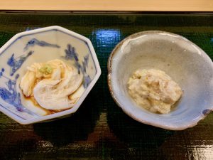 さてランチ。山芋と白和えの小鉢。