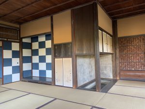 白と藍色の市松模様は桂離宮のモダンさを代表しています。