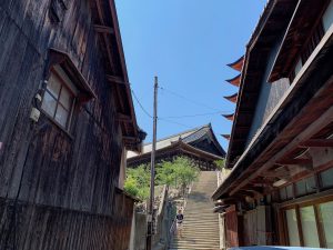 昔ながらの街並みとお土産ストリートが混在する宮島。