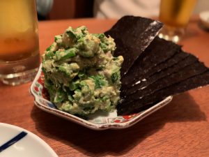 例えば、ミョウガとマグロとアボカドの和え物に海苔を添えてきたり、