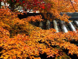 甍のはげた味わいと紅葉がいい味わい。