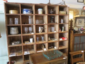 inside of shop. Furniture such as chests of drawers, shelves, and desks and small miscellaneous goods are lined up.